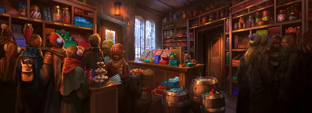 Honeydukes is a sweet shop famous for its chocolate and its many, wonderful and wild sweets[1]. It is located in the wintry, all-wizarding village of Hogsmeade, in Scotland, and is frequented by students and teachers alike; indeed, one can barely move due to the crowd of visitors throughout the Christmas season[1]